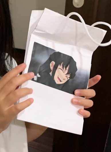 こうして完成した紙袋には、それぞれお気に入りのキャラクターの絵や、自分で描いたイラストを貼り付けて、世界に一つだけのオリジナルデザインに仕上げました。ミニオンズやかわいいうさぎのキャラクター、個性的なイラストなど、子どもたちの豊かな発想が光る素敵な作品ばかりです。