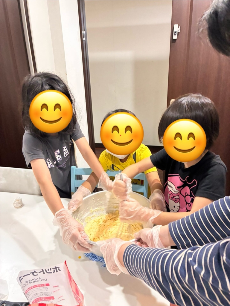 おはなし会が終わった後で、みんなで「お豆腐ドーナツ」を作りました。