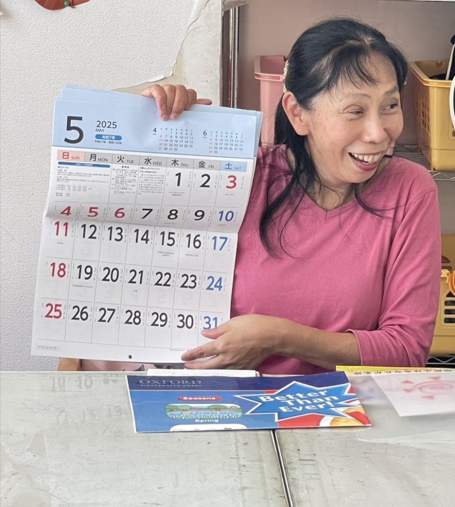 続いて、天気(sunny・rainy・cloudyなど)や四季(spring・summer・autumn・winter)を英語で学びました。カレンダーを見ながら、月(January〜December)や日付の言い方(1st, 2nd, 3rd…)にも挑戦!みんなで元気に声を出して発音練習をすることで、英語の発音や違いに気づくことが出来ました!