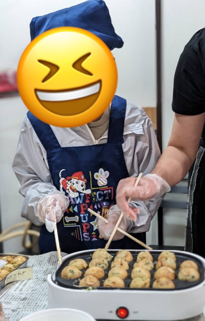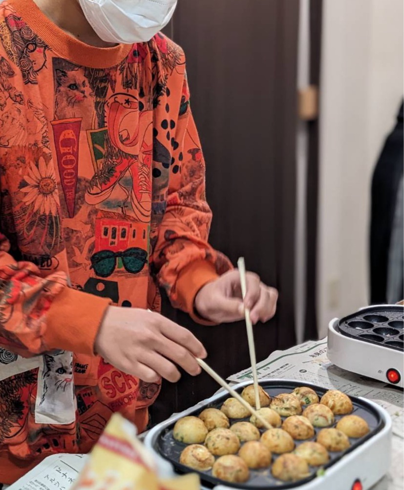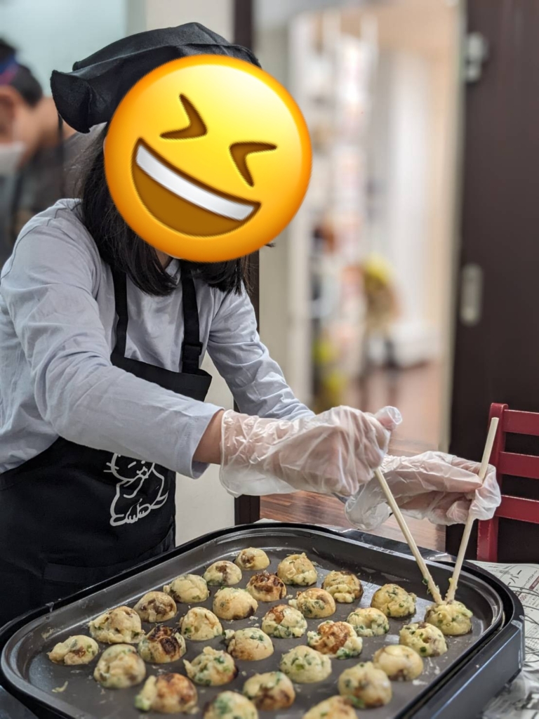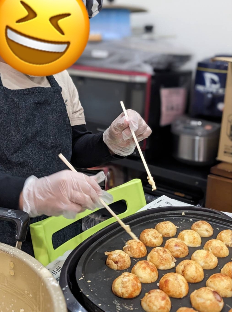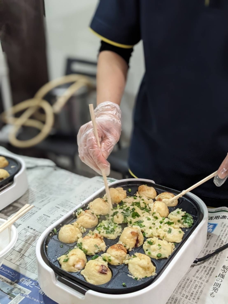 プロの吉川先生のご指導のもと、みんなでふわふわの絶品たこ焼き作りに挑戦しました。