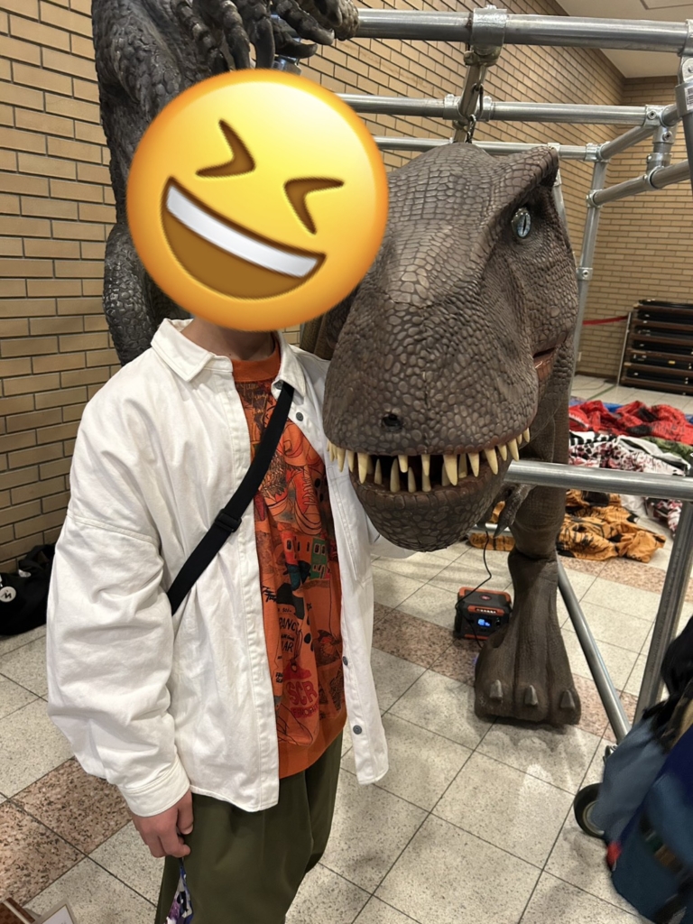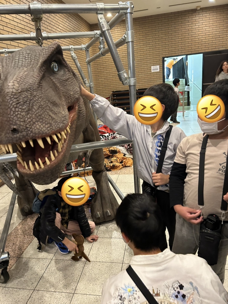 恐竜のバルーンを持った子や、リアルな恐竜のオブジェと記念撮影をしている子など、会場全体が賑やかなお祭りの雰囲気でした。
