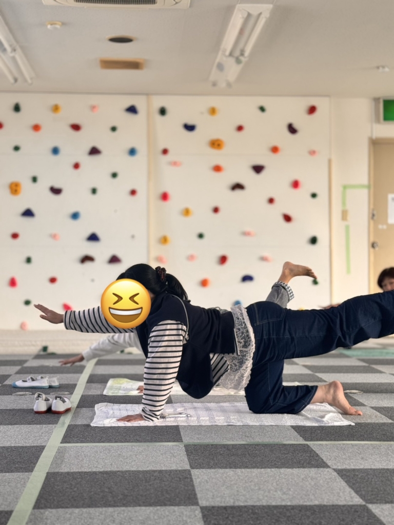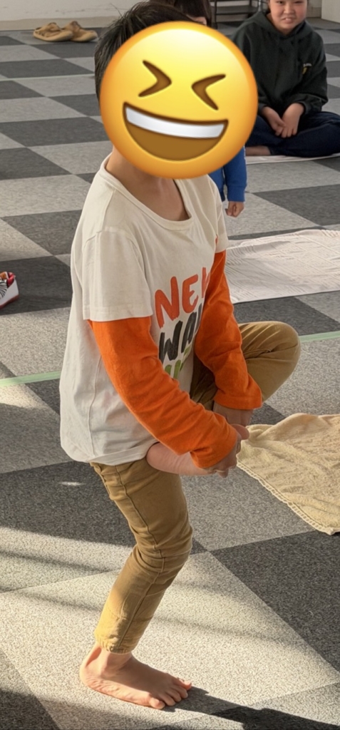 バランスポーズでは、子どもたちが「できた!」「見て見て!」と得意気な顔。