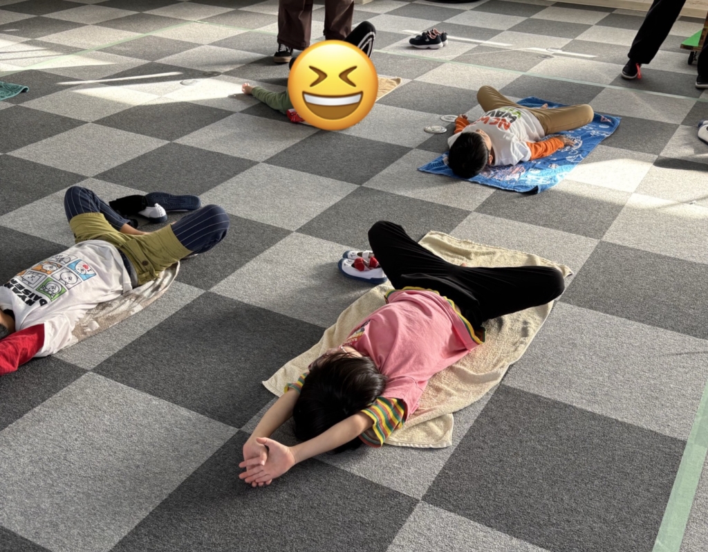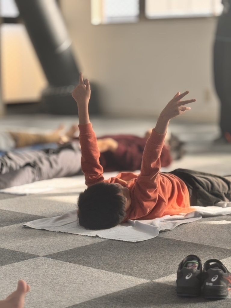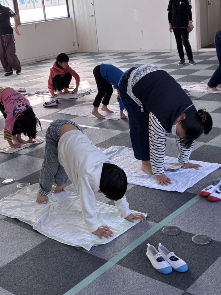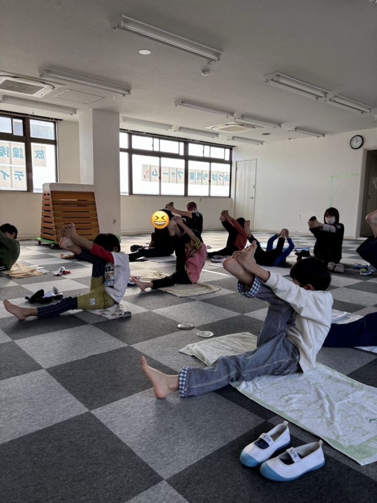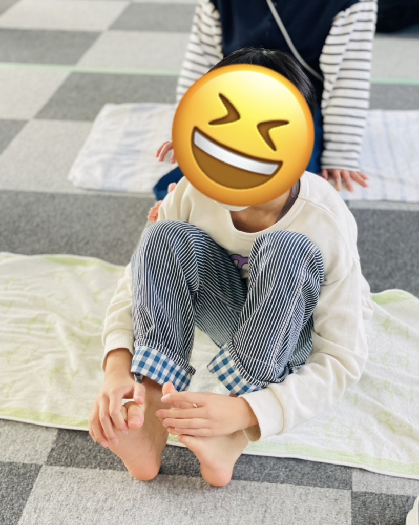 足の指をくるくるほぐしたり、足の指じゃんけん(グー・チョキ・パー)で大盛り上がりしながら、体の芯からぽかぽかしていきました。