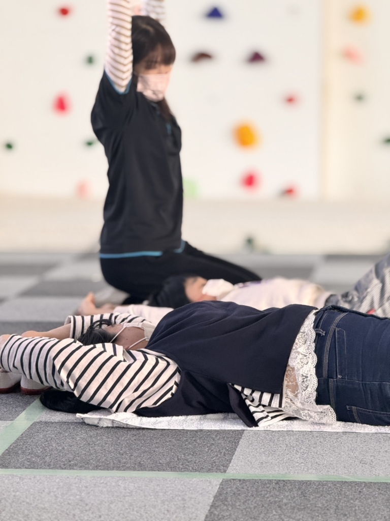 うつ伏せでリラックスする時間もあり、みんな自然とふぅ〜っと深呼吸。