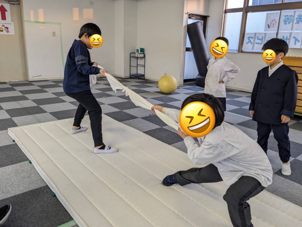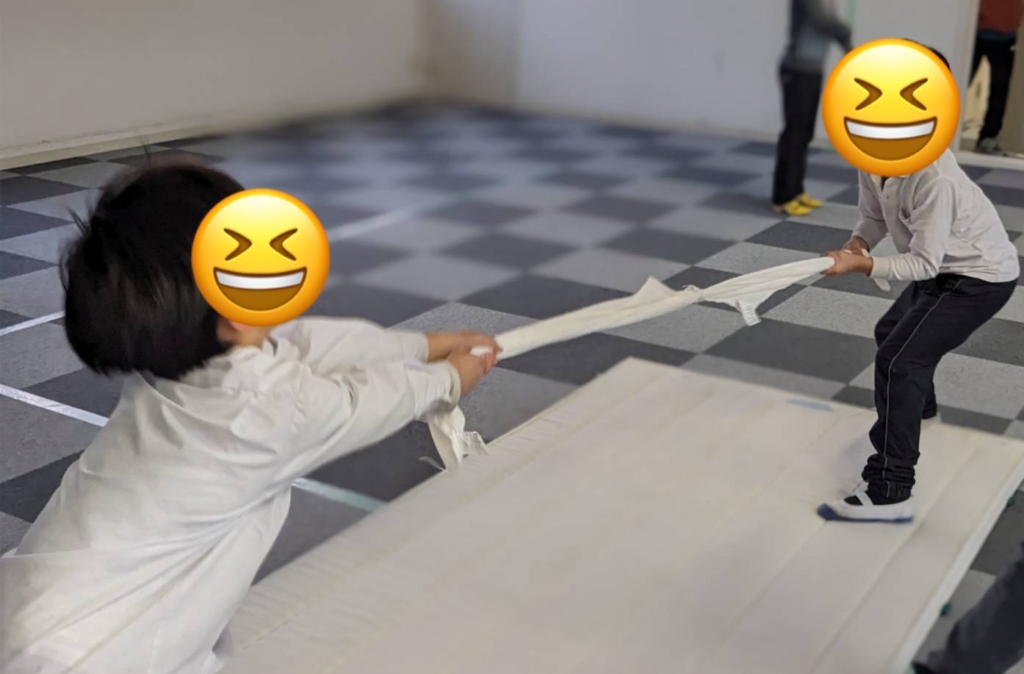 「どのくらいの力で引っ張ればいいか」「相手の力に合わせてどう重心を移動させるか」という、目に見えない力の加減(固有受容覚)を学ぶことができます。相手の動きに合わせて自分の身体をコントロールするバランス感覚が養われます。 - 他者意識とコミュニケーション能力