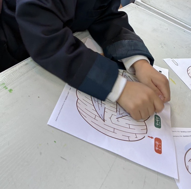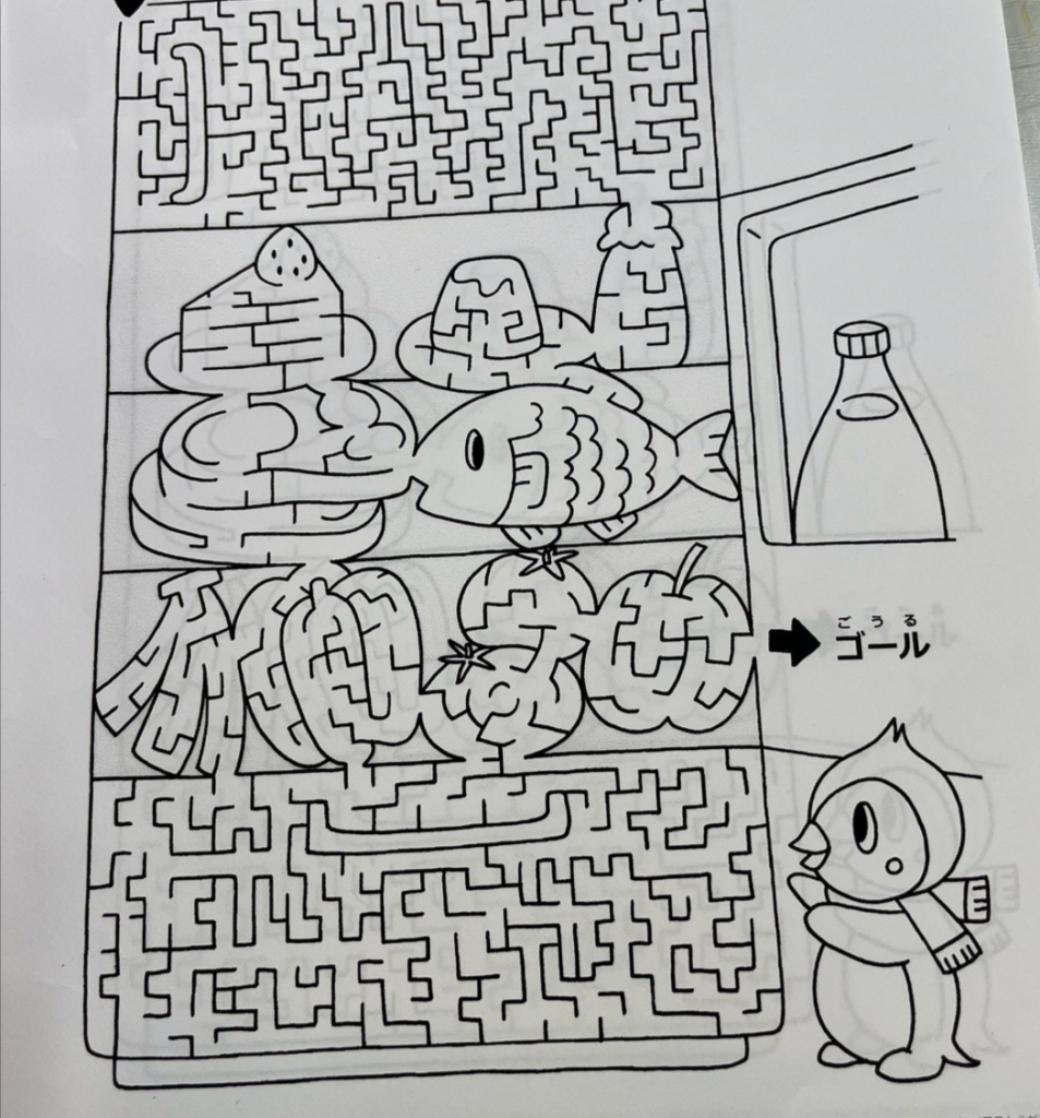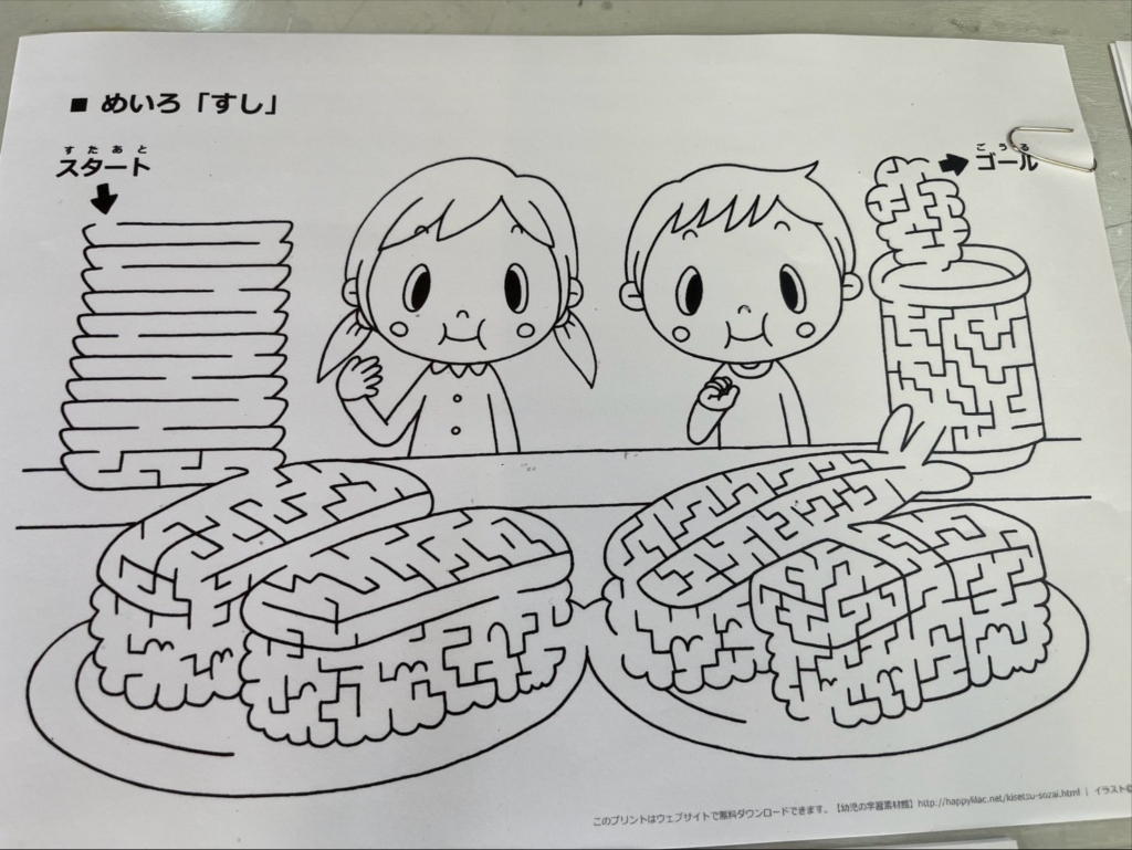 高学年のお子さまには線が入り組んだ少し複雑で難しいもの(冷蔵庫やお寿司の迷路など!)を提供しました。
