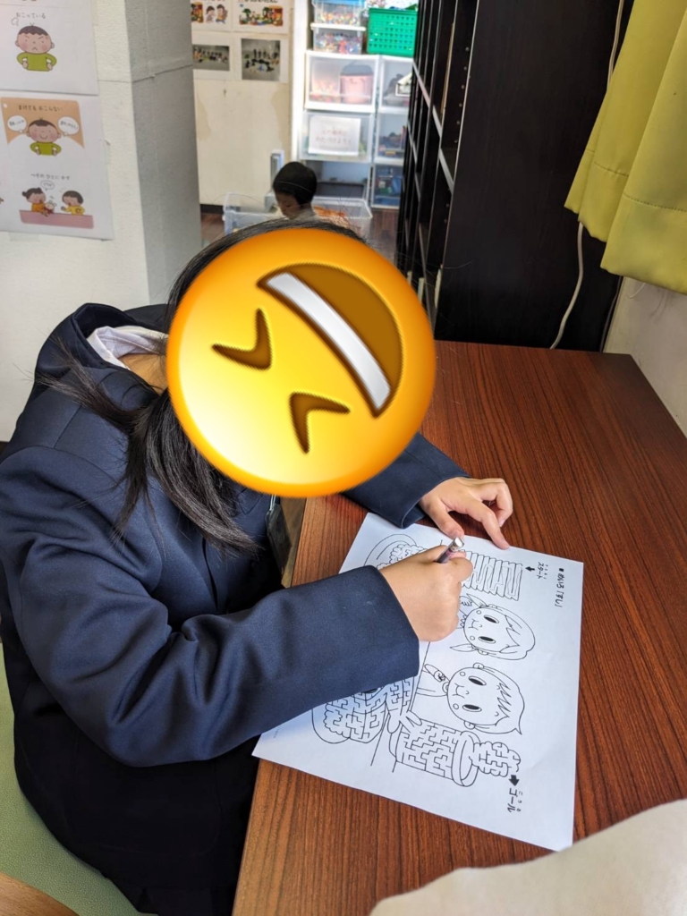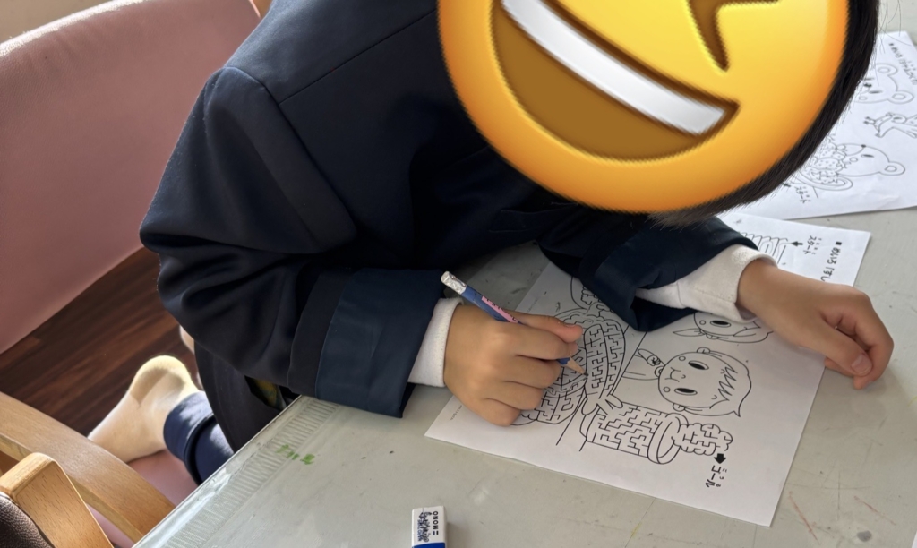 今日の療育施設では、みんなで「迷路」を使ったビジョントレーニングをしました。
