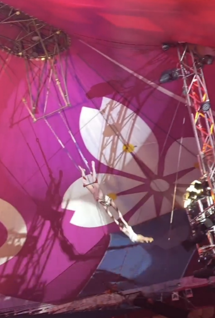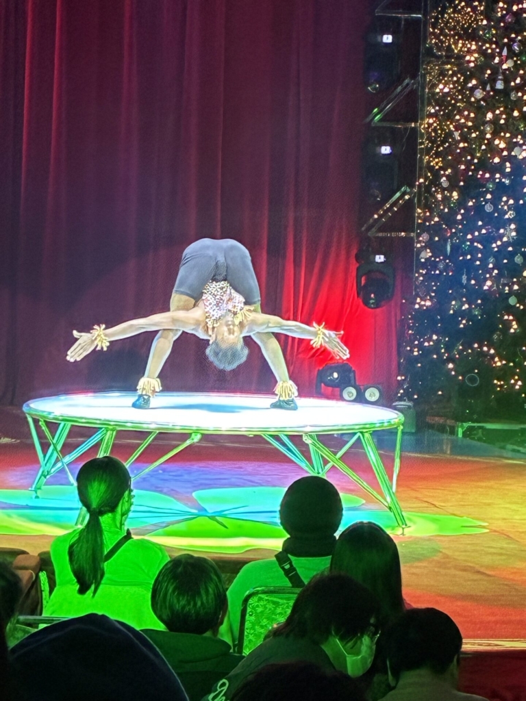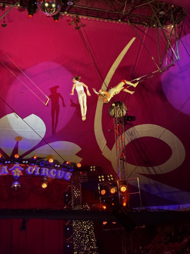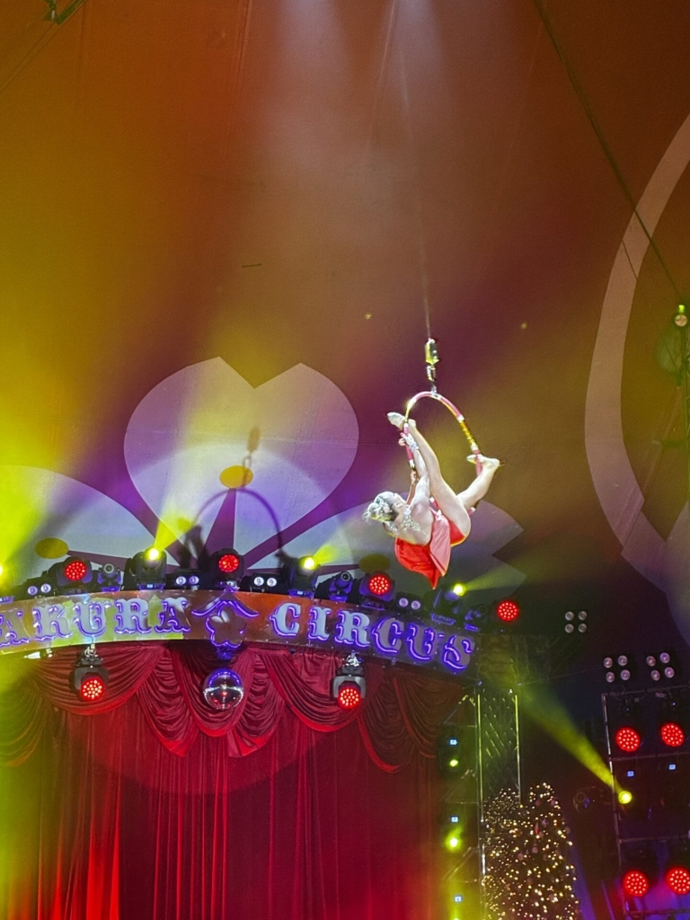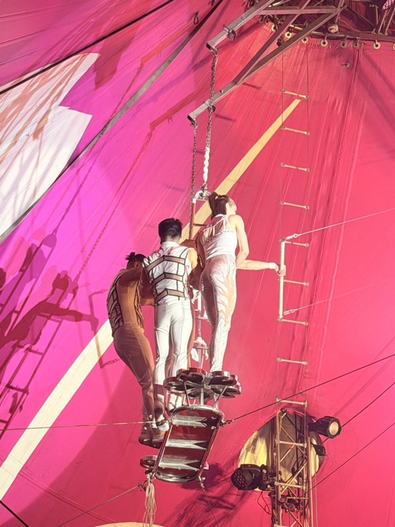 いよいよ最終演目の空中ブランコでは、高い位置からのダイナミックな動きやキャッチの瞬間に「おおー!」と歓声が上がり、拍手を送りながら最後まで楽しむ様子が見られました。