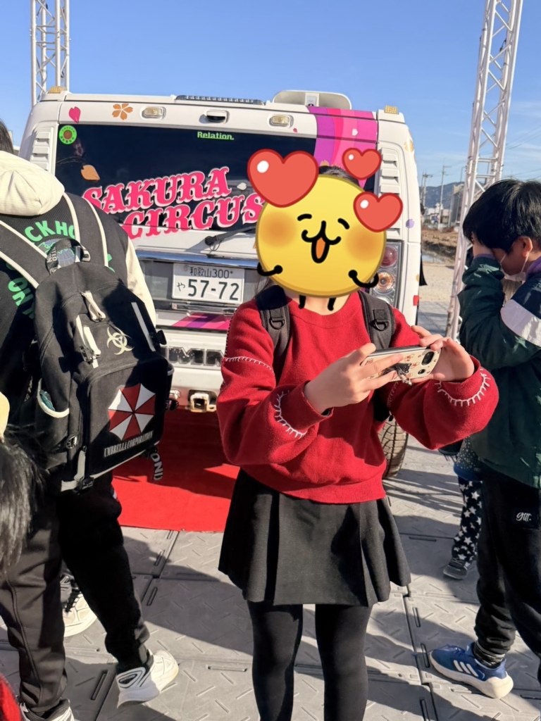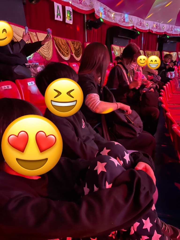 初めてサーカスを見る児童もいれば、「家族で行ったことがある」と教えてくれる児童もおり、期待をもって参加する様子が見られました。到着後は、みんなで記念撮影を行いました📸