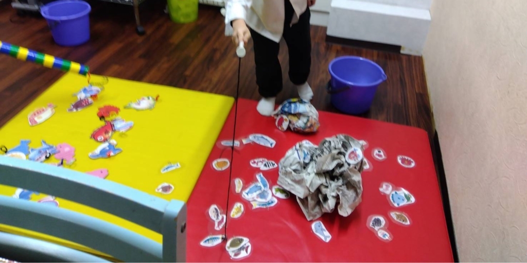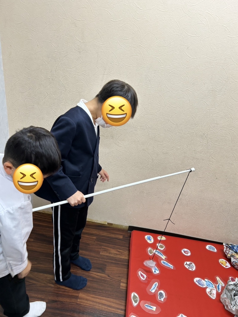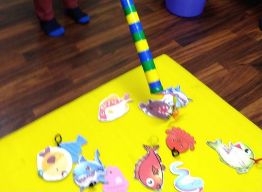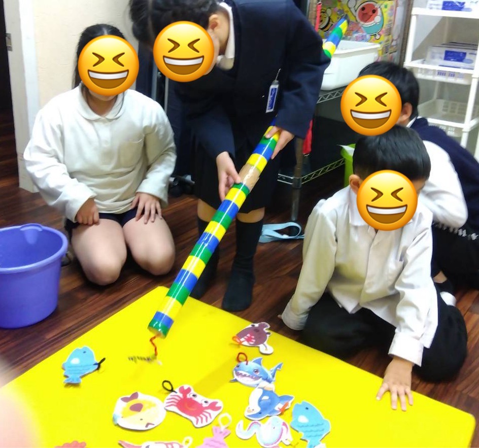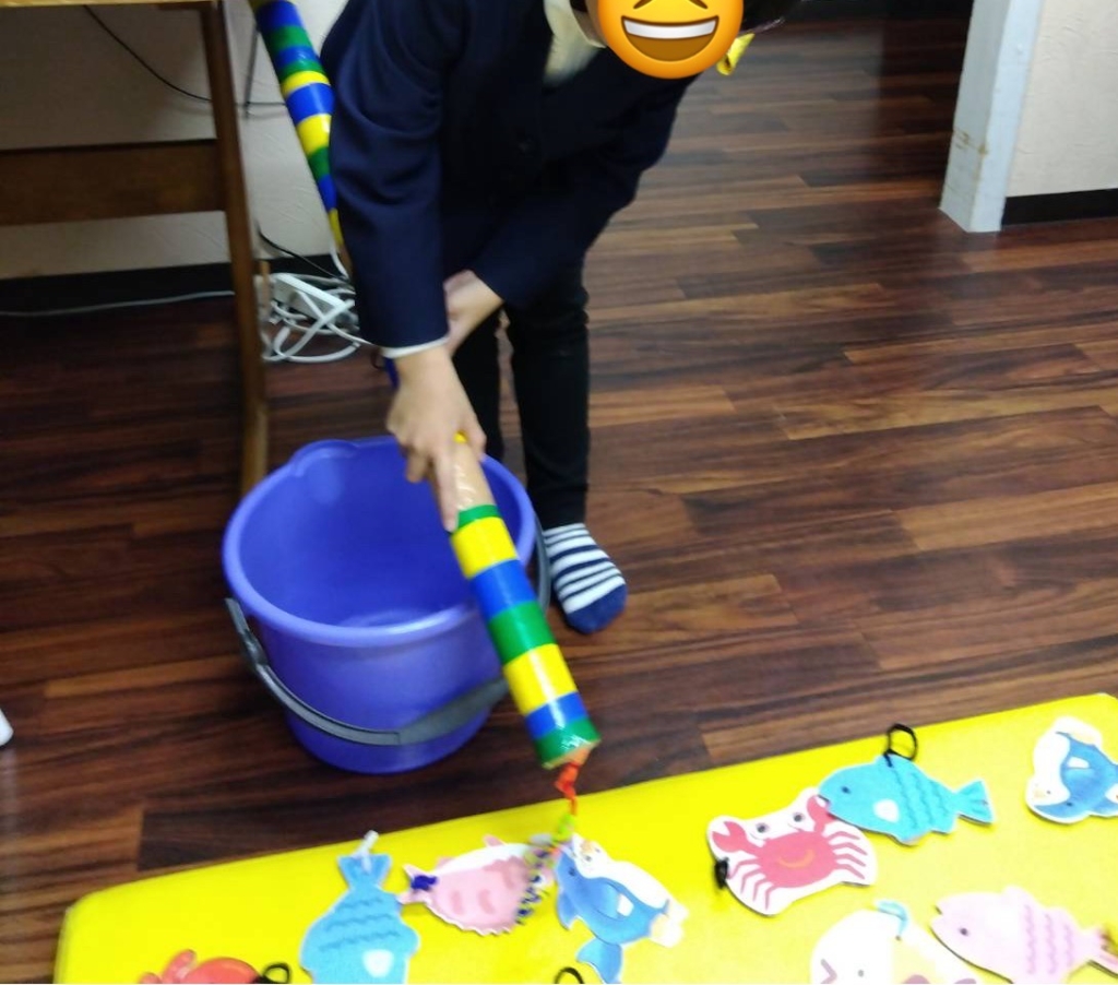 療育施設では、手作りの「魚釣りゲーム」をしました。