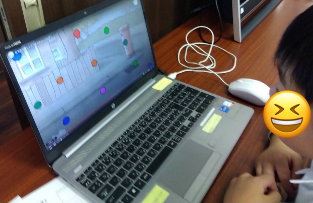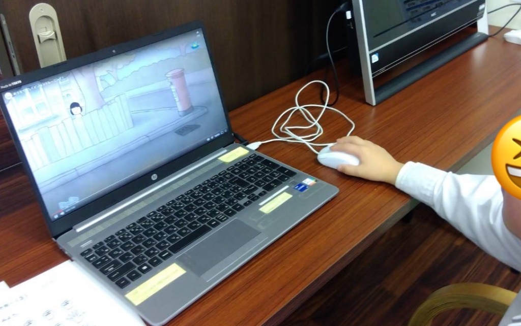 画面上の動くキャラクターや、次々と現れる色のついた丸をを目で追いかけるトレーニングです。マウス操作を組み合わせることで、「目と手の協応(目で見ているものに合わせて手を動かす)」の力を高めます。
