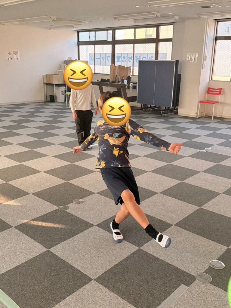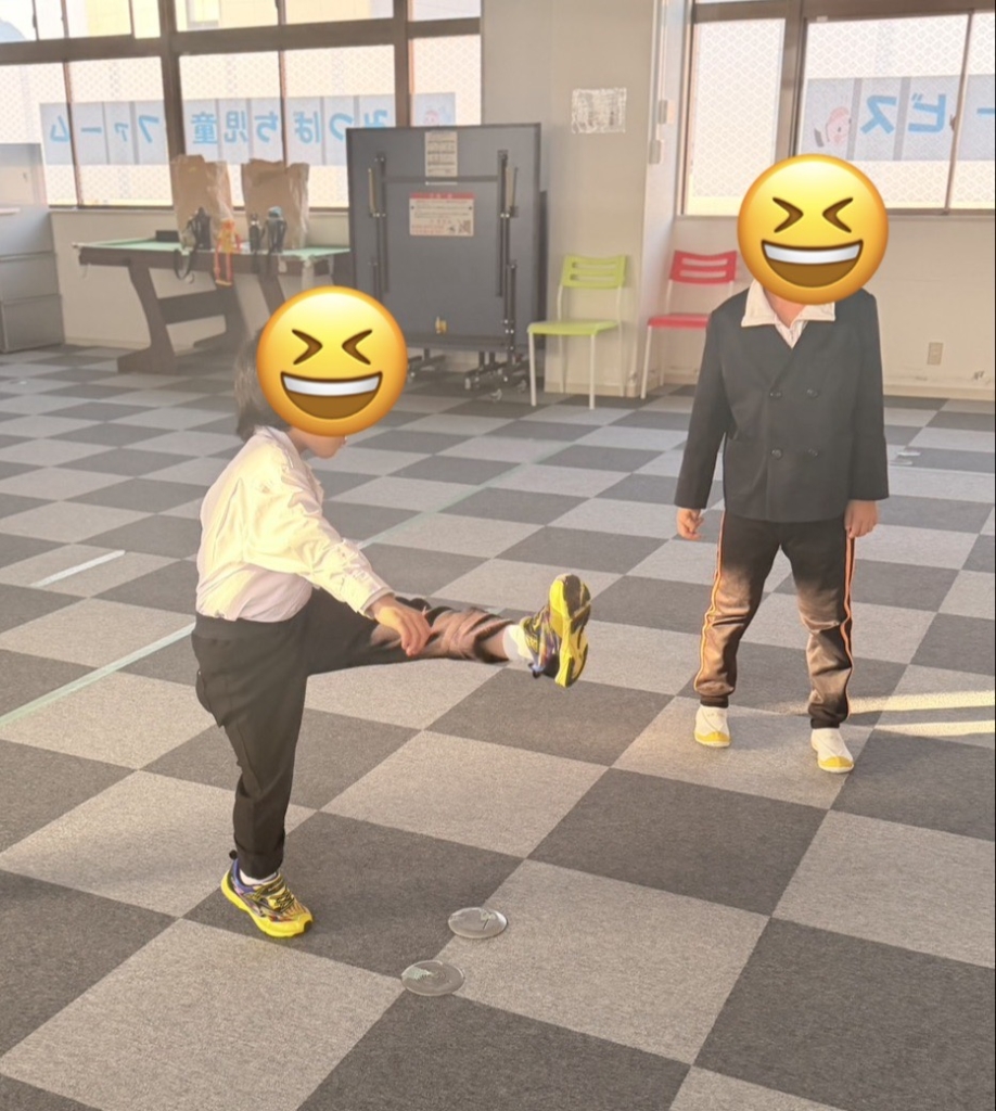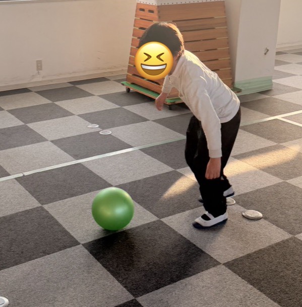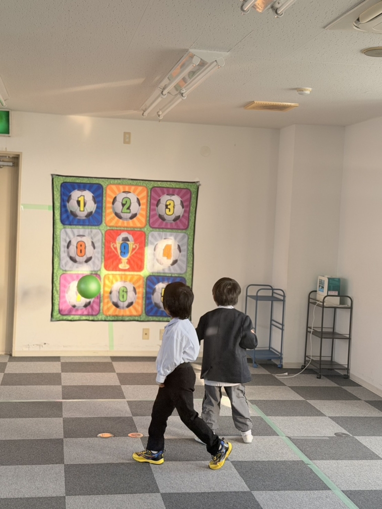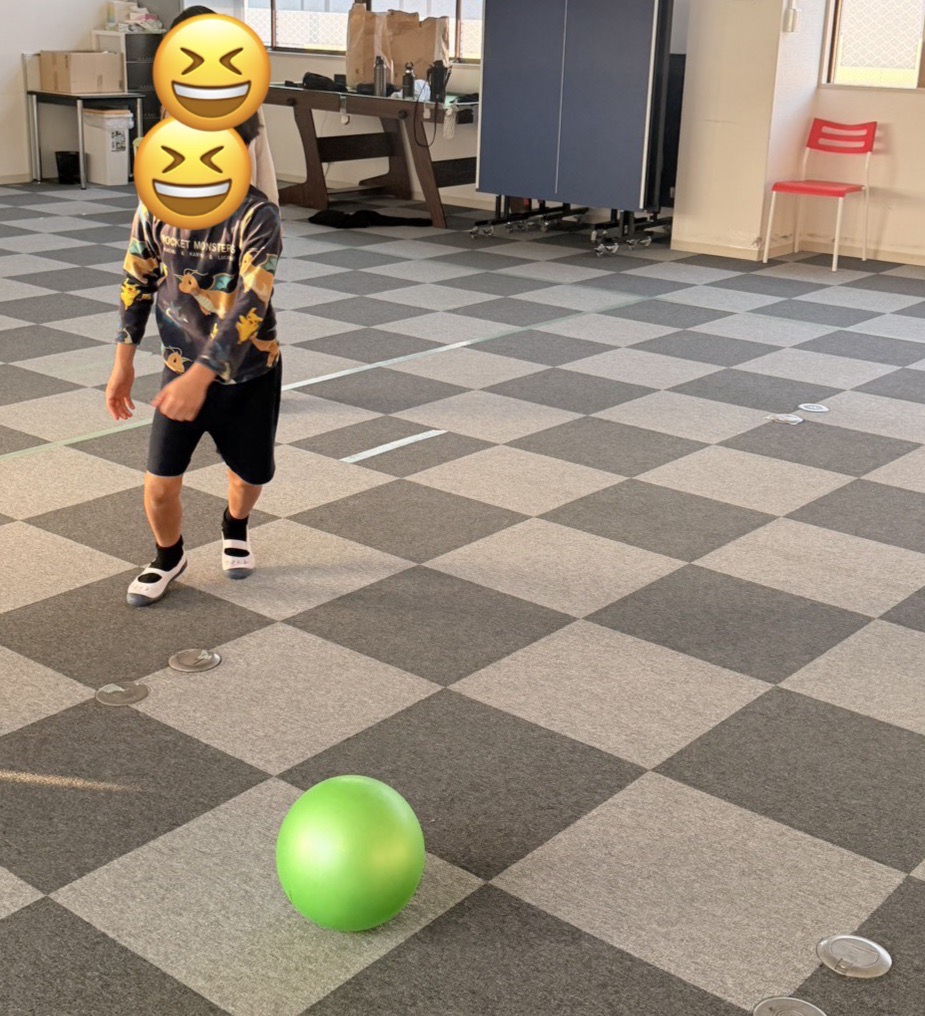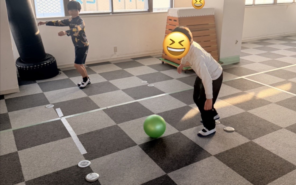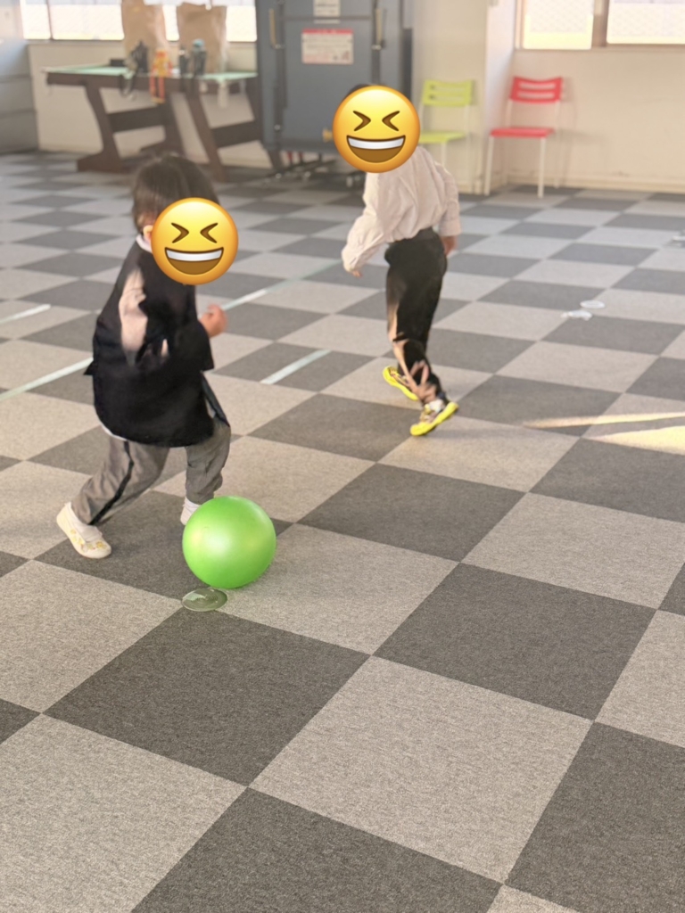 全身運動: ボールを追いかけたり、狙いを定めて足を振り抜いたりと、室内ながらも全身をフルに使ってイキイキと体を動かしました。