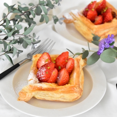 • ミルフィーユ: サクサクのパイ生地とカスタード、いちごの酸味が絶妙です。
