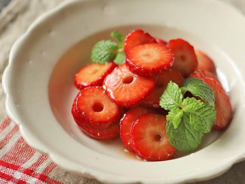 • いちごのマリネ: いちごに少しのお砂糖をまぶして冷蔵庫で寝かせ、マスカルポーネチーズを添えるだけで贅沢な一皿に。