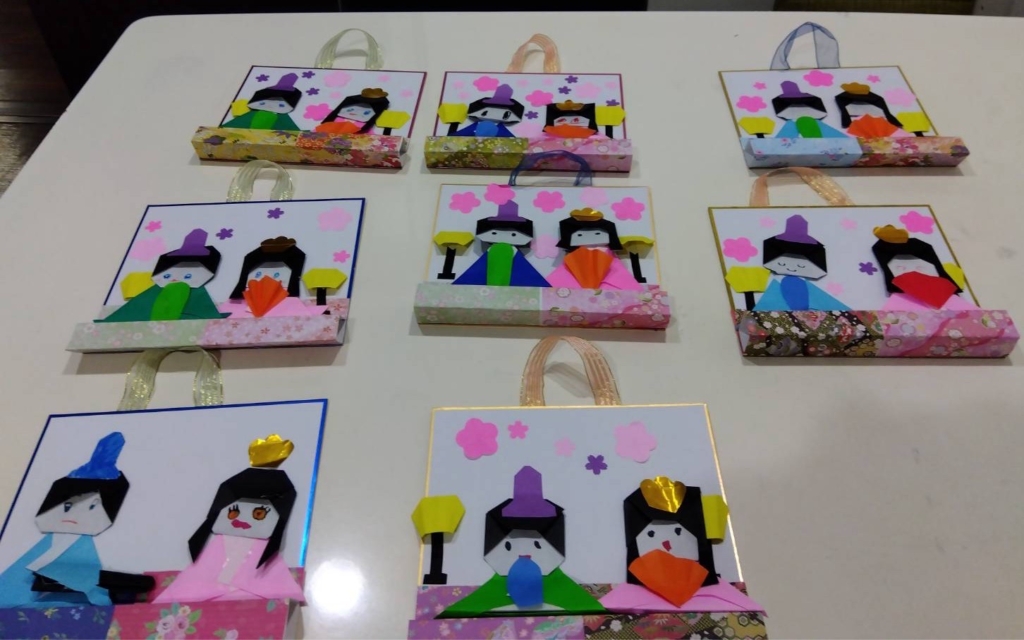完成した作品はどれも個性的で、表情豊かなお雛様とお内裏様が並び、室内が一気に春らしい明るい雰囲気に包まれました。
