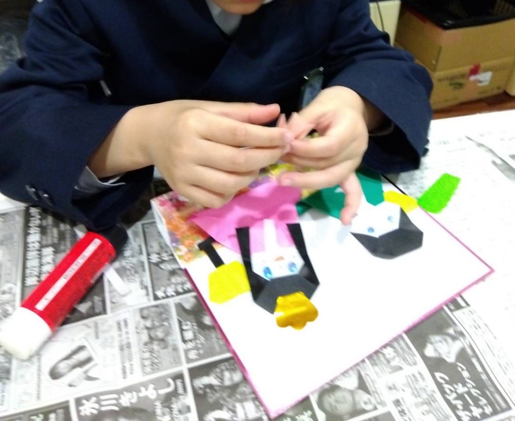 台紙に対して「どこにお雛様を置くか」「お花をどこに散らすか」を考えることで、全体のバランスを捉える力が育ちます。