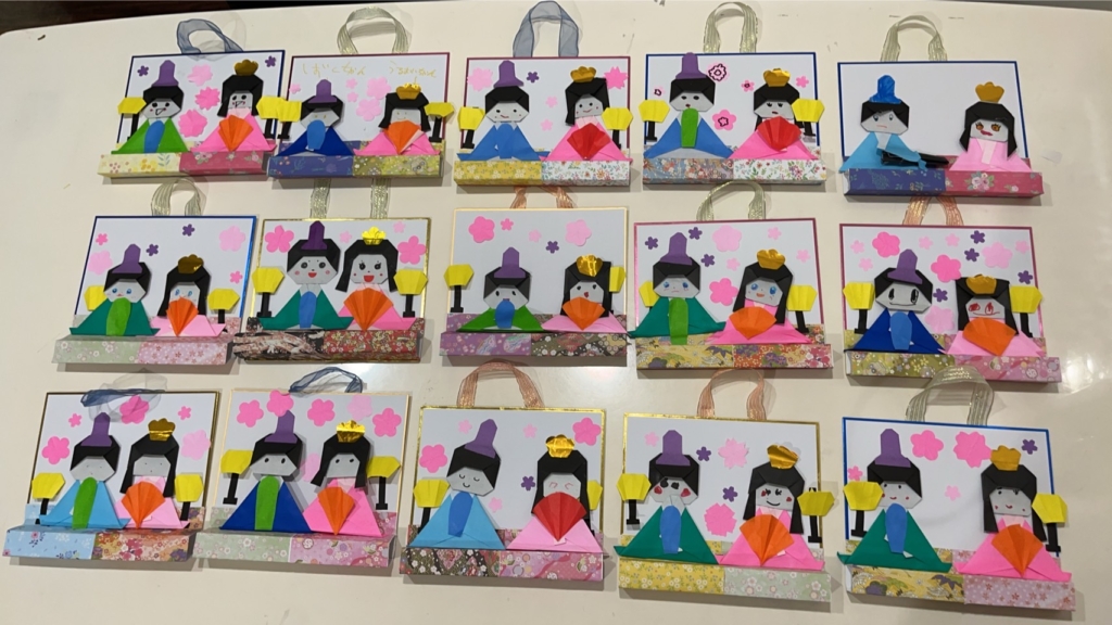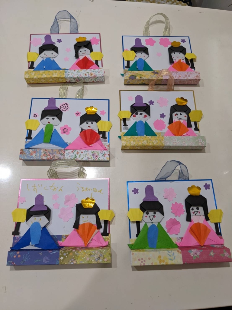 完成した作品はどれも個性的で、表情豊かなお雛様とお内裏様が並び、室内が一気に春らしい明るい雰囲気に包まれました。
