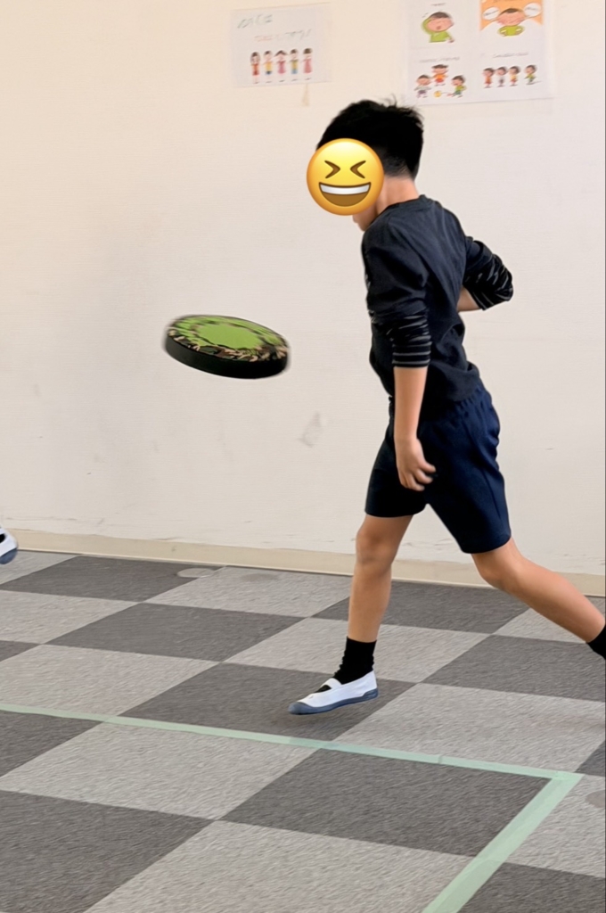フワフワと不規則な軌道で飛んでくるディスクをしっかり目で追い、タイミングを合わせて手でキャッチする動きは、視覚情報と体の動きを連動させる力を養います。これは学習面での「板書」や「手先の器用さ」にもつながる大切な能力です。