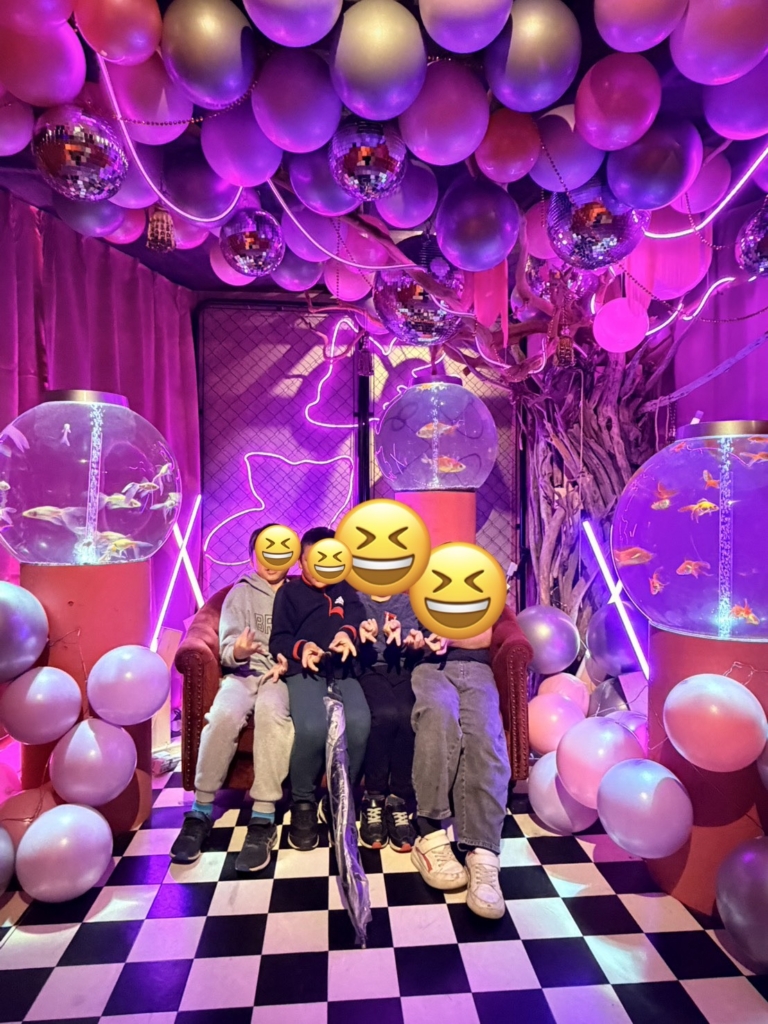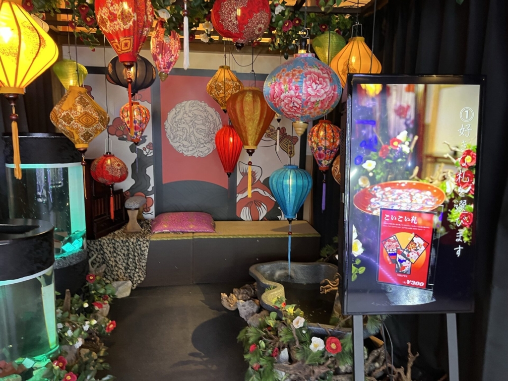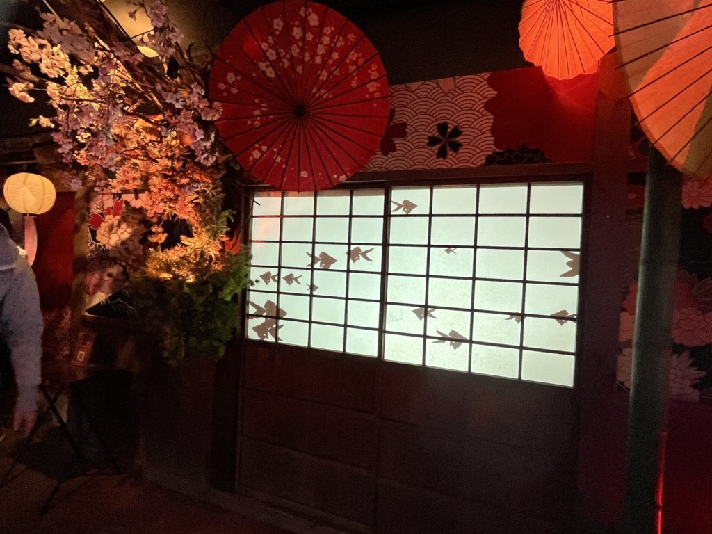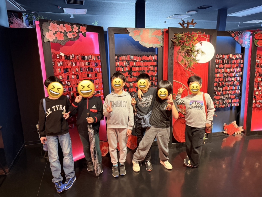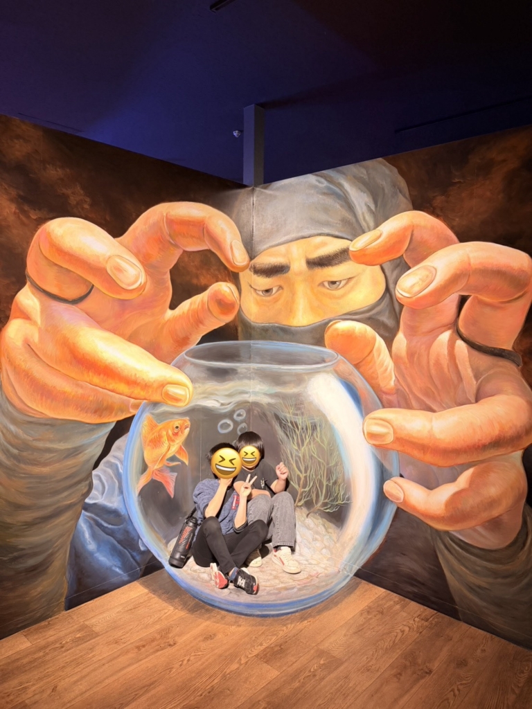 一歩足を踏み入れると、そこには色鮮やかな金魚たちが優雅に泳ぐ、光と鏡の幻想的な空間が広がっていました。伝統的な和の情緒と現代アートが融合した演出に、子どもたちは一瞬で心を奪われたようです。