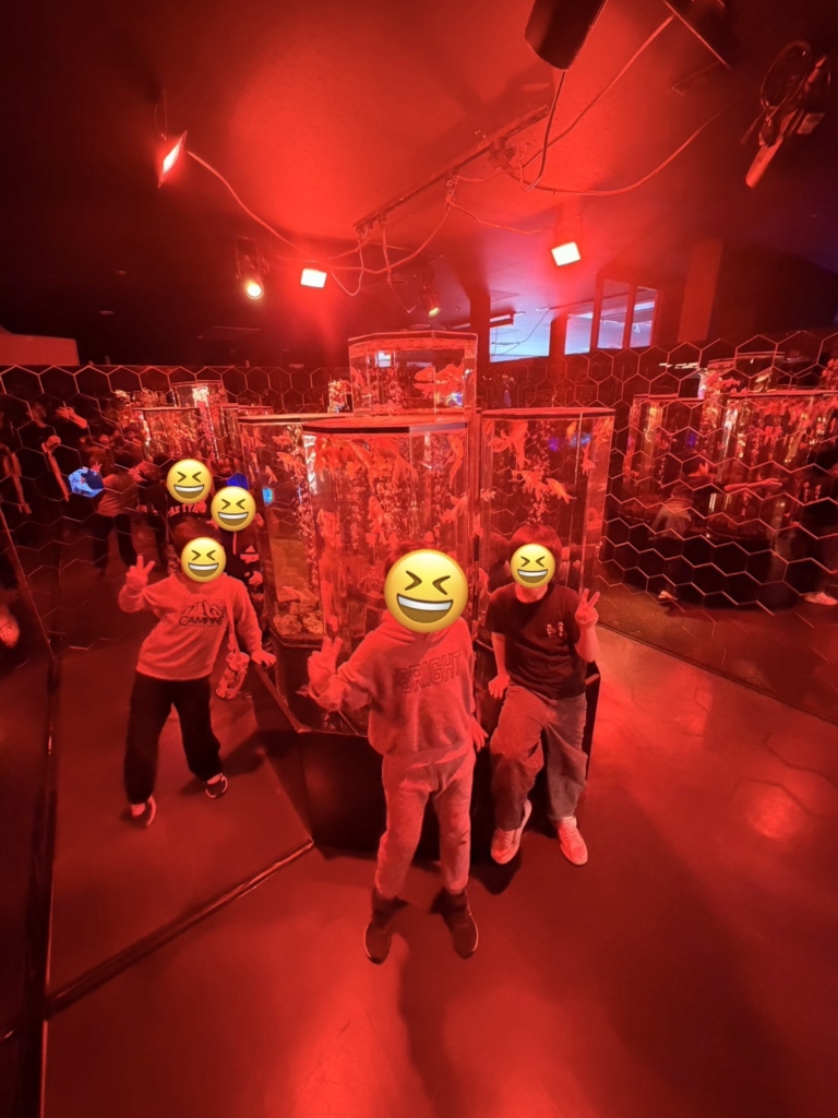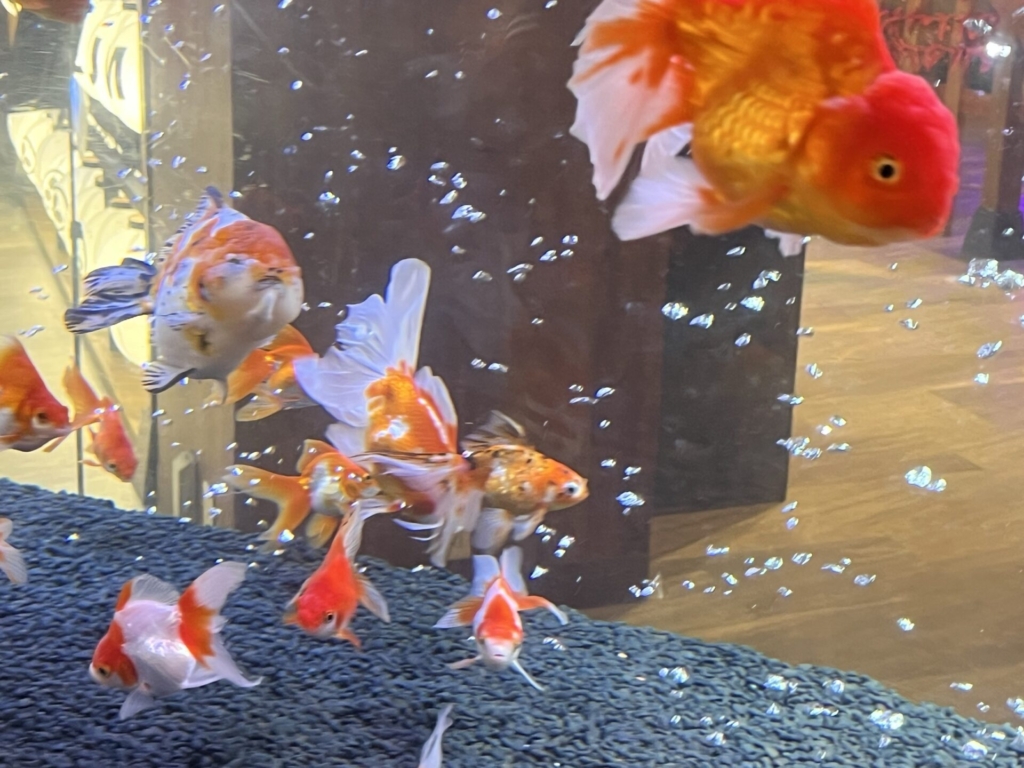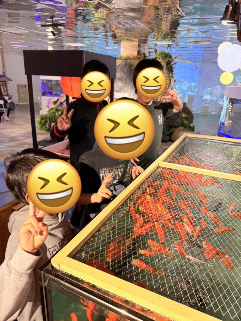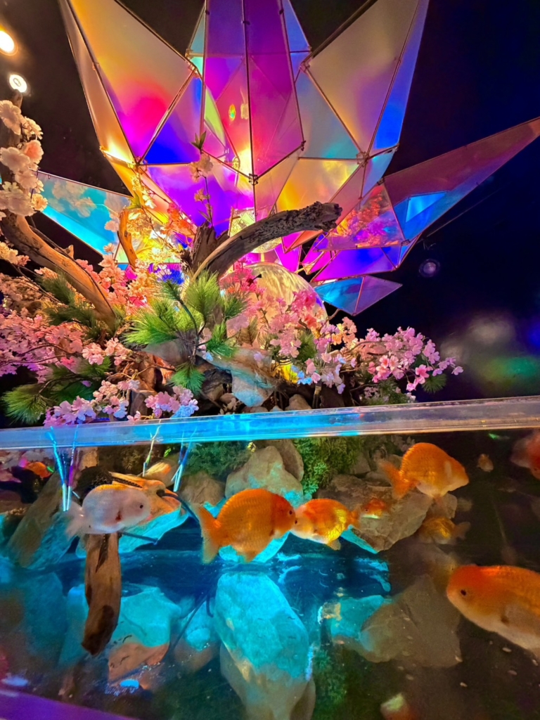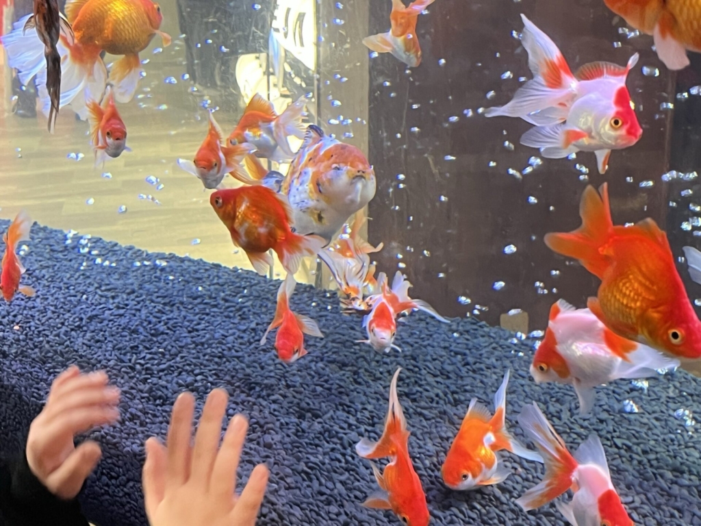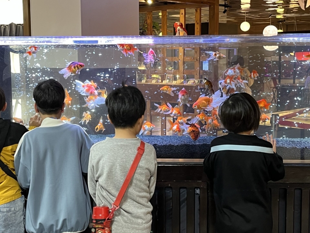 館内では、宝石のように輝く水槽を覗き込みながら、「見て、この金魚すごく大きい!」「こっちの水槽、キラキラしていて魔法みたい✨」といった驚きと感動の声が次々と上がりました。