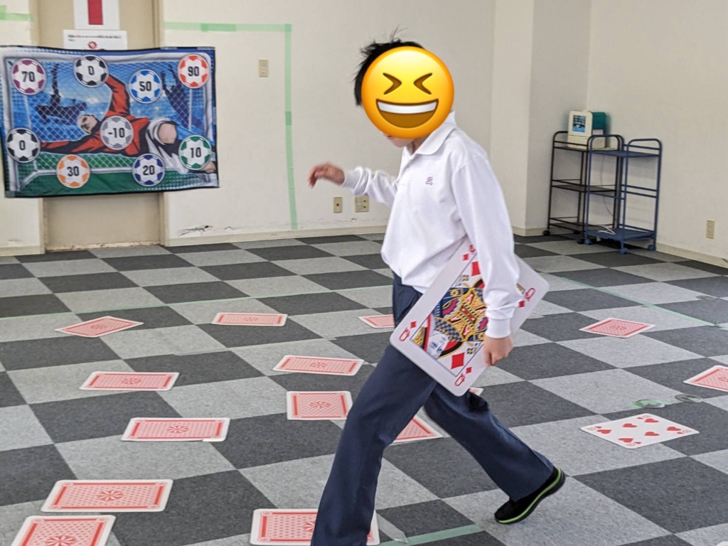 運動施設いっぱいに広がる「大判トランプ」での神経衰弱!