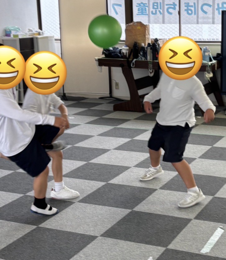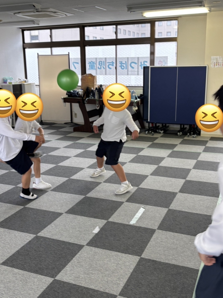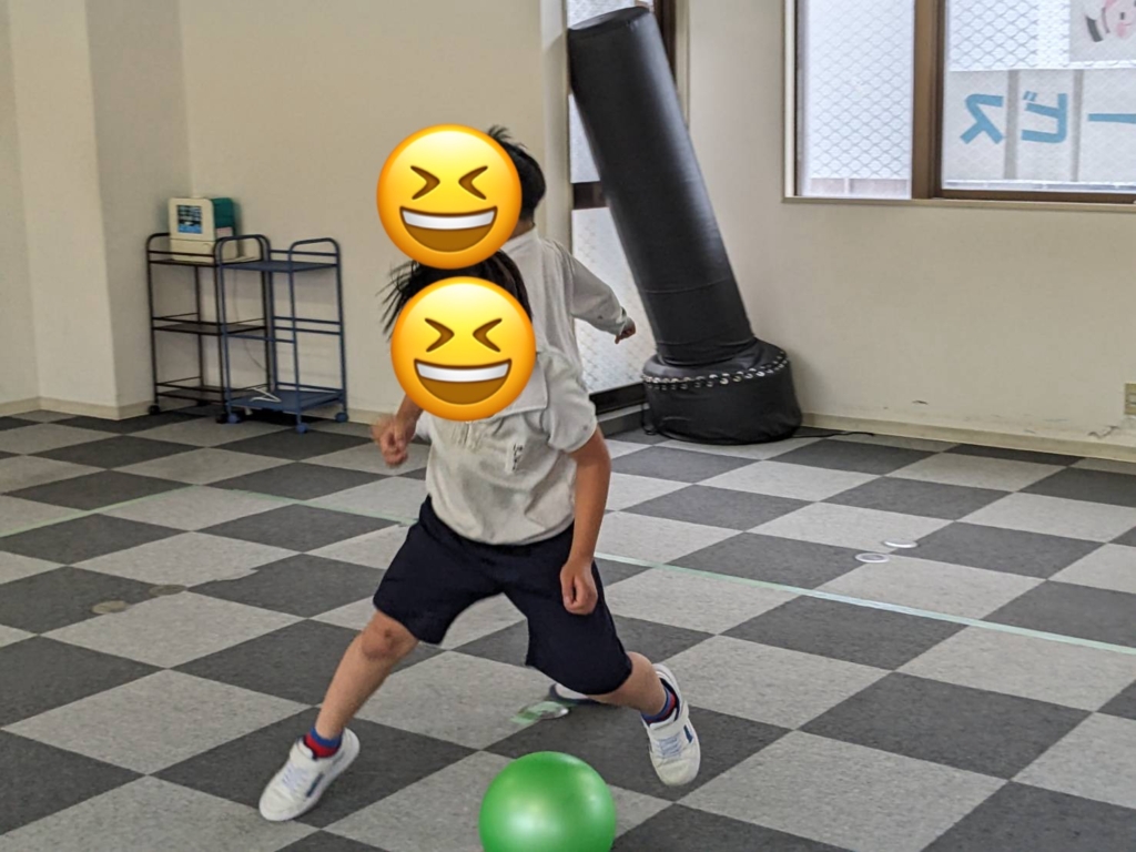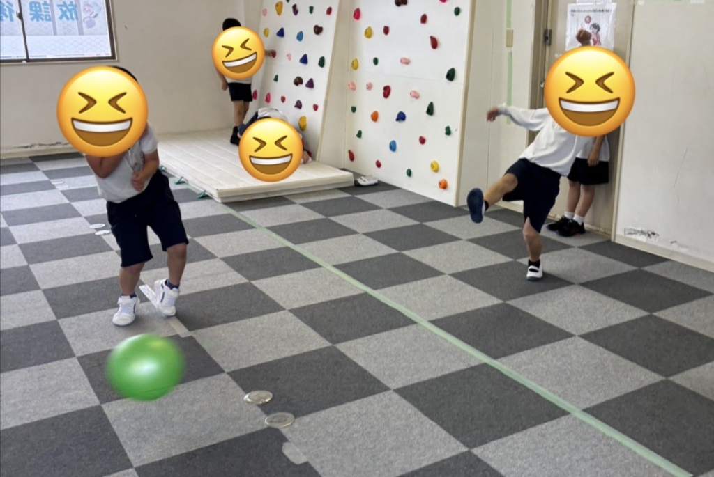 ボルダリングの壁を背に、ある子はボールを追いかけ、ある子はスケートボードでバランスを競い、フロア全体が「楽しい!」のエネルギーで満たされていました。