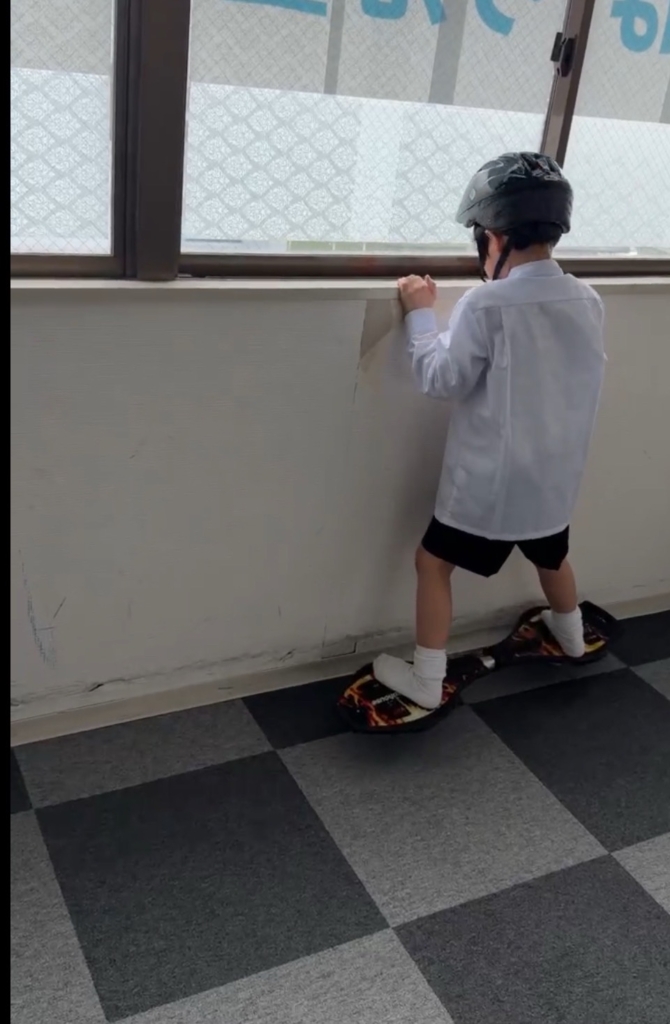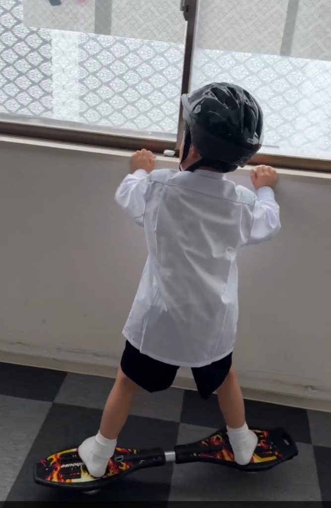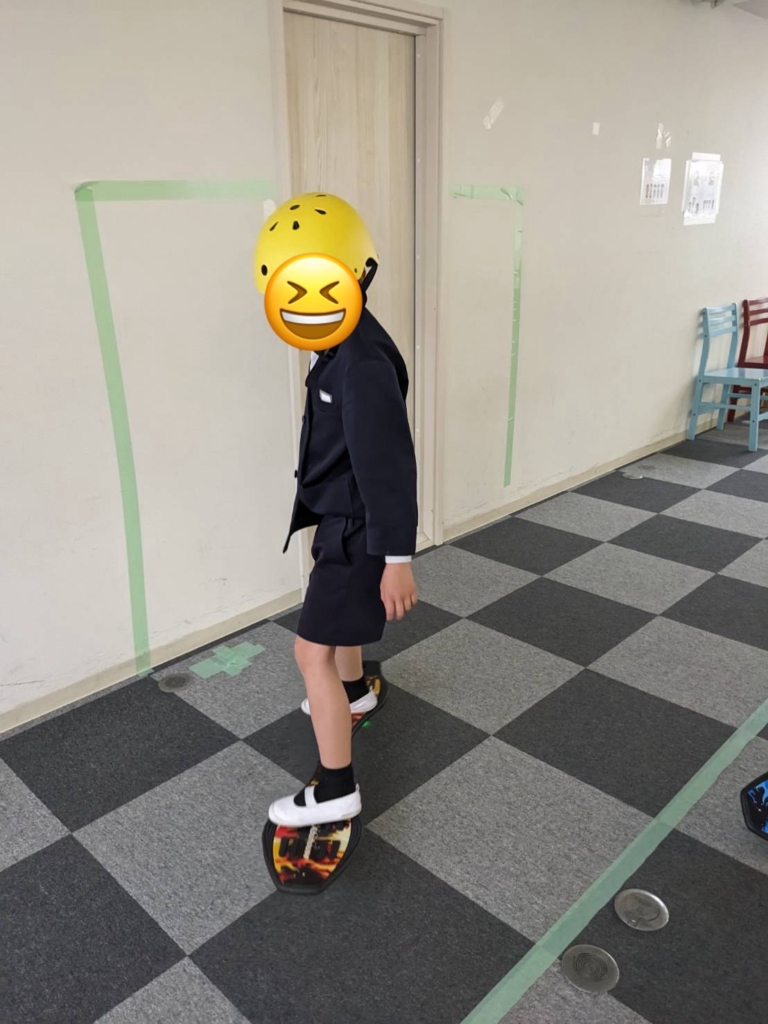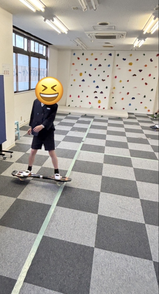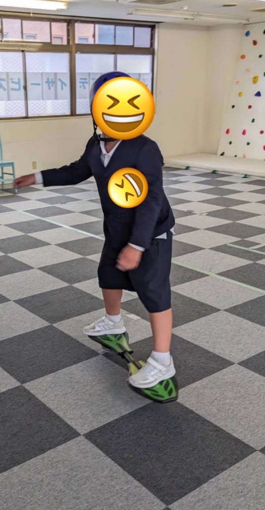 今日、一年生のお子さんがJボード(ブレイブボード)に初めて挑戦しました。
