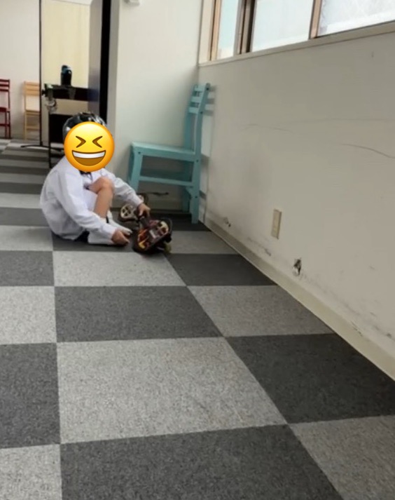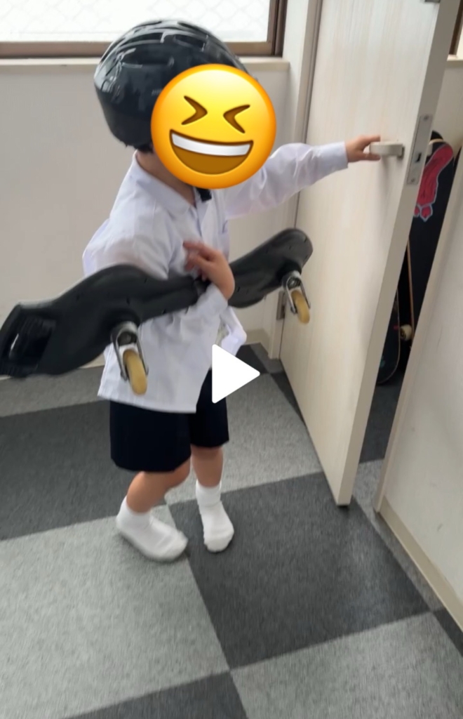 練習の途中、バランスを崩して転んでしまう場面もありましたが、「もっと頑張る!」「もっとやりたい!」と、その表情は諦めない、頑張るという気持ちがいっぱいです。