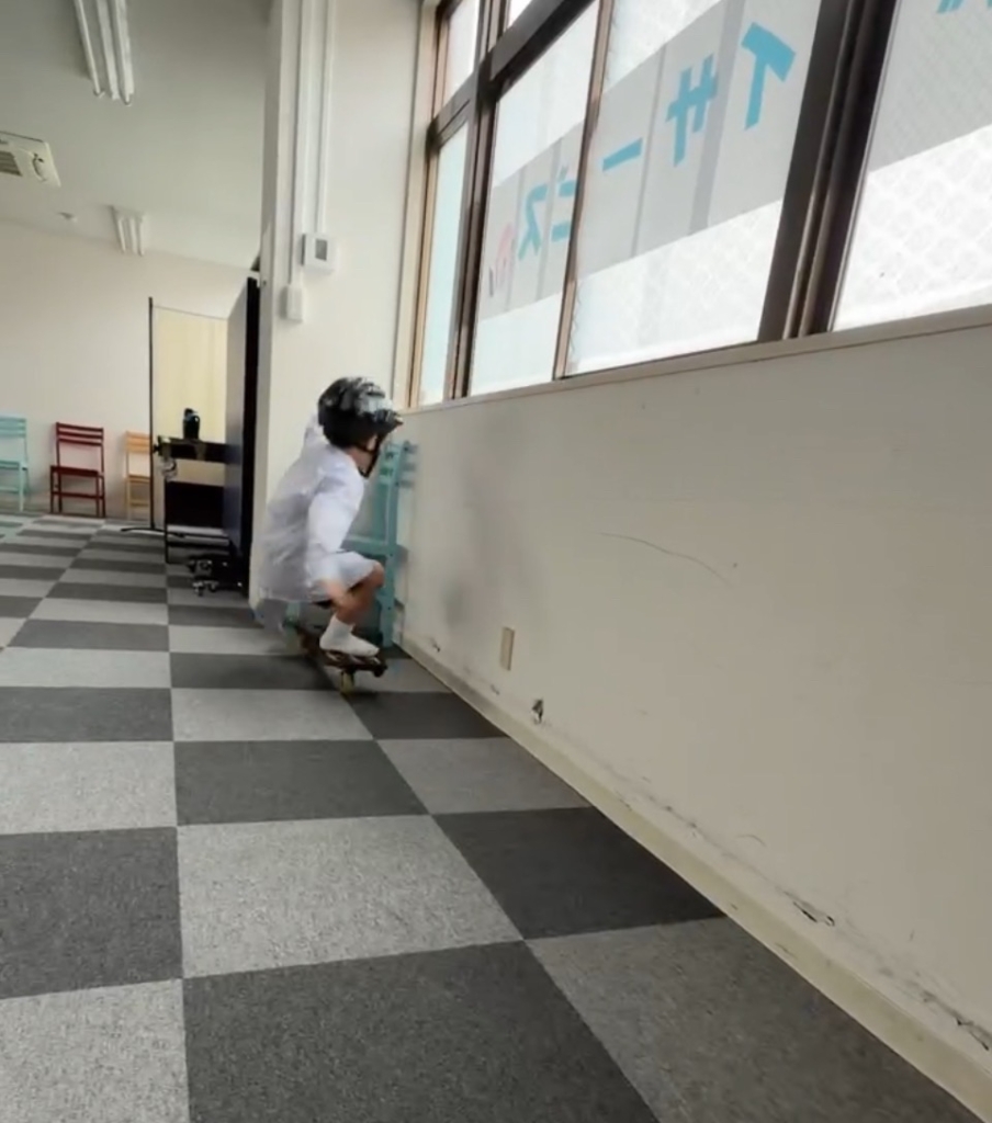 もはやボードは体の一部。広いフロアを自由自在に駆け巡り、スリリングな「オン・ボード鬼ごっこ」が繰り広げられています。