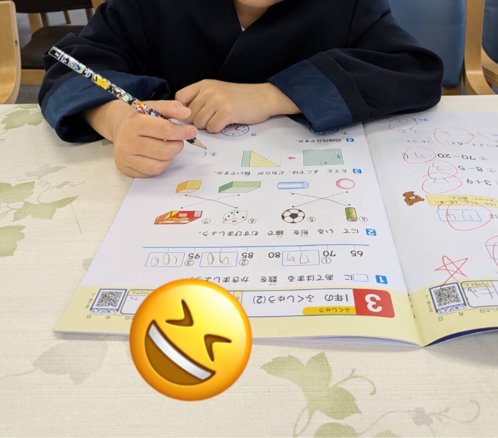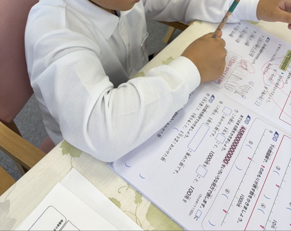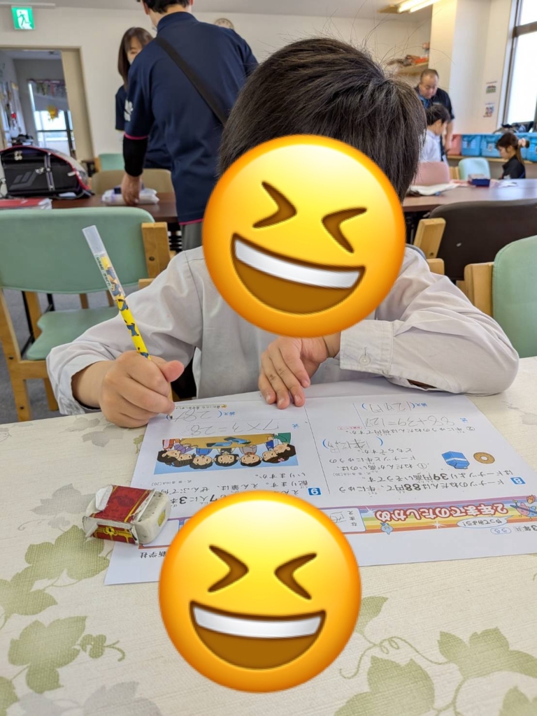 次に待っているのは「宿題タイム」。机に向かって、算数の大きな数の計算や漢字の練習に集中します。「ここはどうやるの?」とスタッフのアドバイスを受けながら、一歩ずつ自分の力で進めていく姿は真剣そのもの。なんと、10日間連続で頑張ると「お楽しみのガチャガチャ」ができるという嬉しいご褒美もあり、みんな「継続する力」を楽しみながら身につけています。
