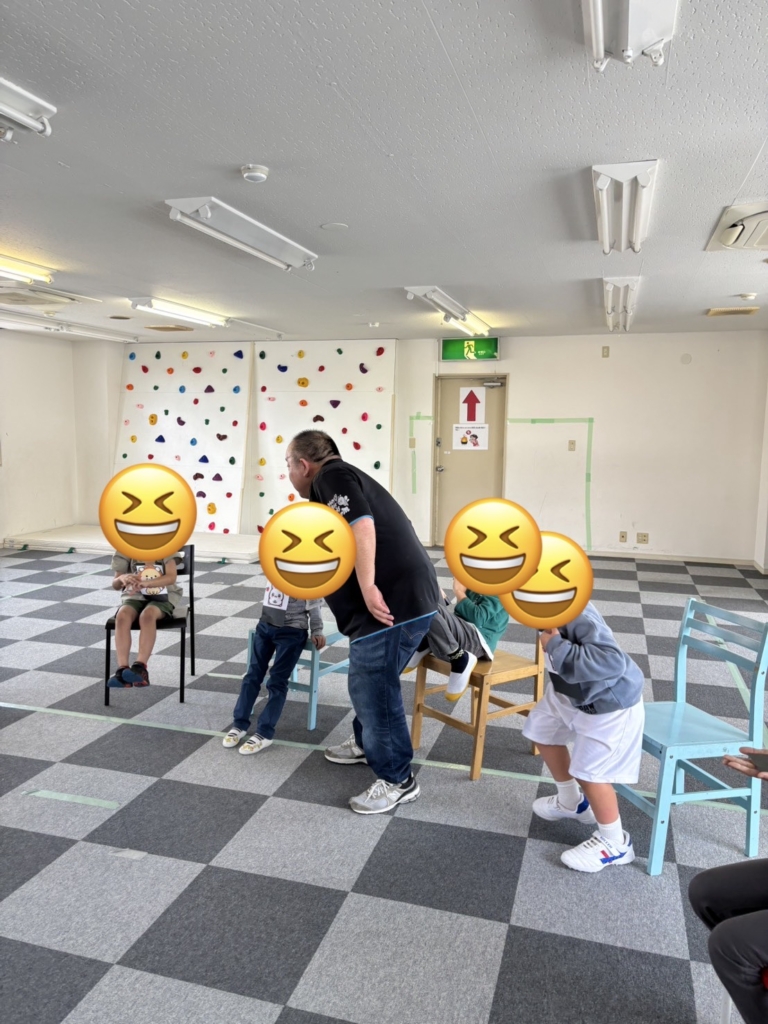 子供たちはみんな椅子から落ちないように身体を支えながら、楽しさの中にも真剣な表情で取り組み、互いに競い合う姿が見られました😊