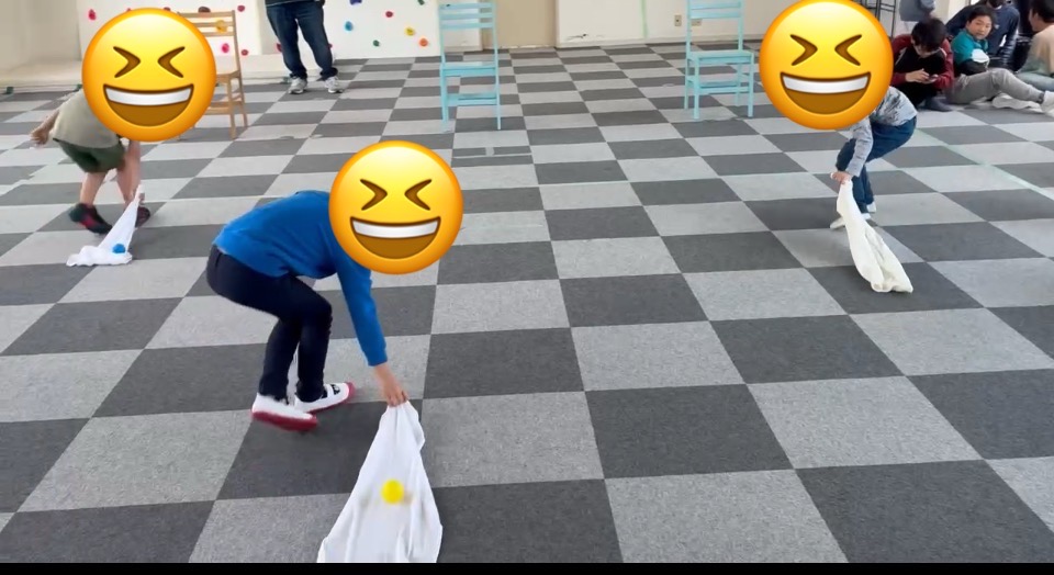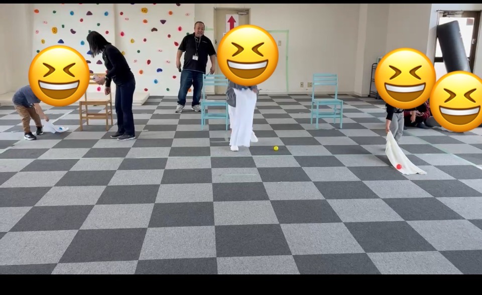運動施設(4階)で、最初にフルーツバスケットの“動物バージョン”をしました。
