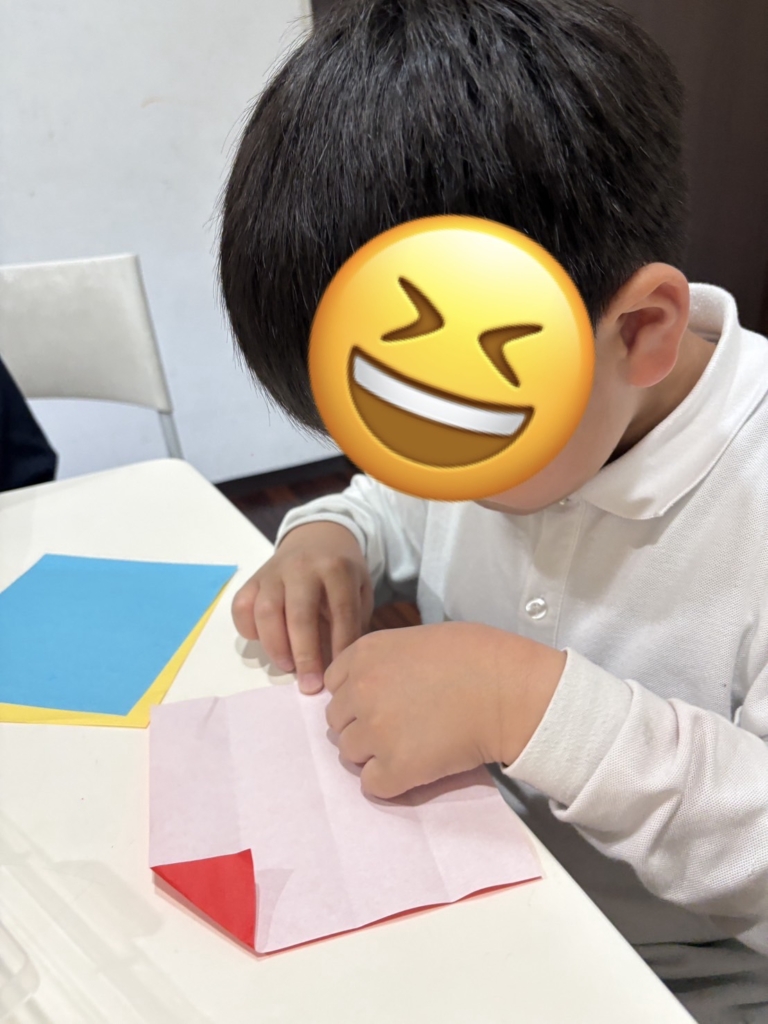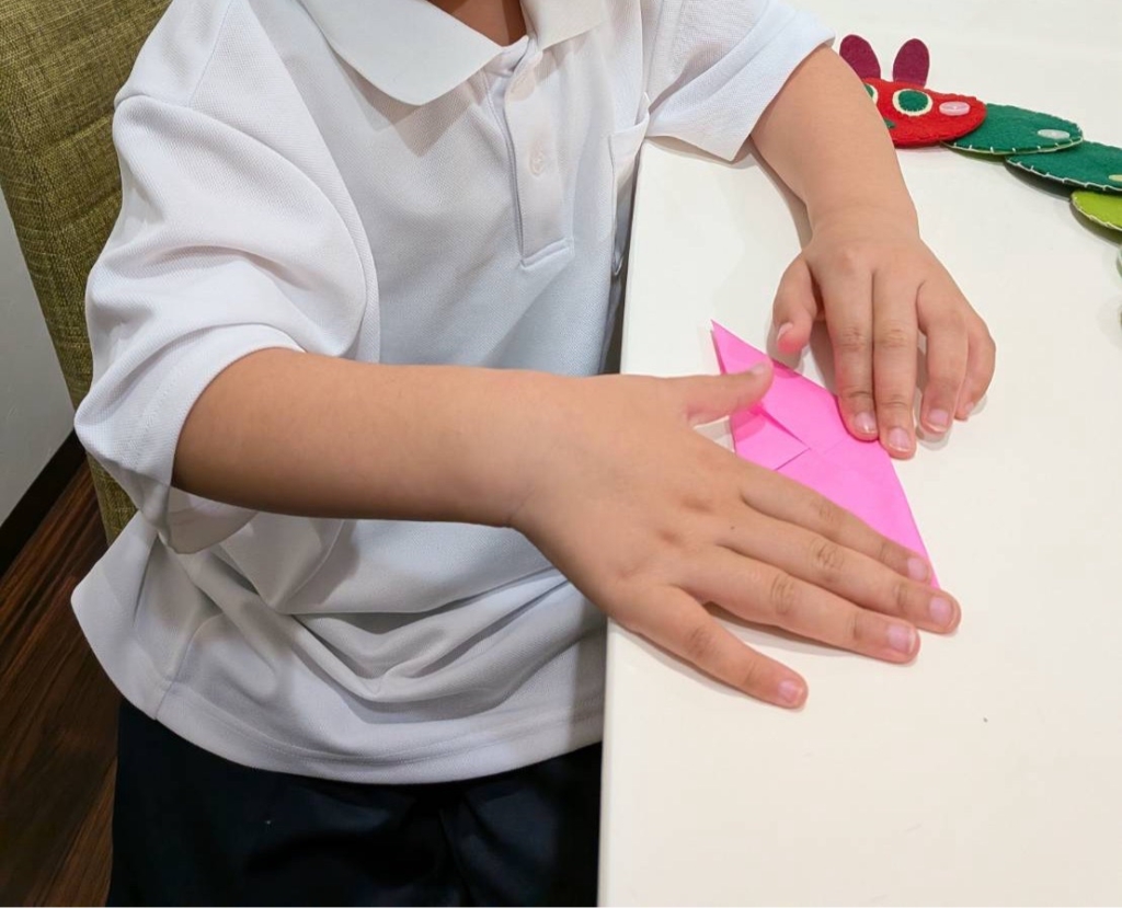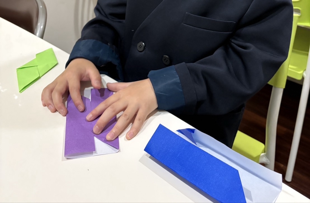 片手で紙を押さえ、もう片方の手で折る。片手で土台を支え、もう片方の手でネジを回す。このように左右の手で別々の動きを同時に行う力は、脳の発達において非常に大切です。